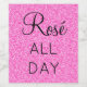 Etiqueta de vinho "Rosé o dia todo" elegante, moderna e feminina com fundo rosa brilhante e escrita preta elegante.