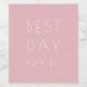 This elegant wine label design captures the essence of a joyous celebration with its soft pink background and sophisticated typography. The phrase "Best Day Ever" is prominently featured, combining clean sans-serif lettering for a modern touch with a flowing script that adds a personal, heartfelt feel. Perfect for commemorating special occasions like weddings or anniversaries, these labels exude a romantic and timeless mood. Their minimalist yet stylish appearance makes them ideal for adding a personalized touch to your event's beverage presentation.