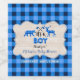 Design, tema de caça, russo: uma forma de madeira lavada com moldura pontilhada, um urso, um alce, árvores e duas escotilhas, todas em uma xadrez azul preta e pontilhada como fundo. Use a ferramenta Personalizar para adicionar suas informações. Por favor, visite minha Coleção de Festas de Xadrez Azul/Lumberjack, para obter itens correspondentes.