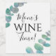 Rótulo da garrafa de vinho do tempo da mãe. Estas etiquetas divertidas da garrafa de vinho são decoradas com folhas de cor aquosa de eucalipto e as palavras "Hora do Vinho da Mãe!" Todo o texto é personalizável. Original Watercolor © Michele Davies.