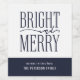 Típica azul moderna minimalista de "BRIGHT and FELIZ", etiquetas de garrafas de férias. Recursos, duas linhas de texto modelo para sua mensagem e nome em branco no bloco de cores azul marinho chic.