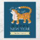 Este retrógrado e fofo rótulo de vinho de férias chinês de ano novo apresenta um tigre rugoso sobre um fundo azul marinho. Personalize-o para as suas necessidades. Você pode encontrar produtos correspondentes na minha loja.