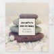 Etiquetas de aniversário ou outras garrafas de evento com uma fotografia com pilhas de rochas sobre si. Cercado por rochas brancas soltas e pequenas flores brancas.