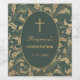 Este elegante design de confirmação com um ar vintage tem uma moldura dourada vintage com folhas de cardo espiraladas e algumas decorações de flores de cardo em um fundo verde escuro. O texto está dentro de uma oval com borda dourada e tem uma cruz dourada acima dele. O nome do menino é escrito em uma elegante fonte caligráfica. Todo o texto pode ser personalizado e tem uma cor dourada semelhante às decorações douradas da moldura. O fundo com suas elegantes decorações de cardo dourado em verde escuro é de uma capa de livro vintage, de Albert Angus Turbayne, para o livro "A Dama do Lago" de Sir Walter Scott, publicado em 1898.