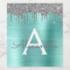 Etiqueta de Vinho com Monograma e Inicial de Metal Brilhante com Brilho Faux Foil Metálico Azul Água Teal e Prata. Isso torna o presente perfeito para o aniversário de 16 anos, casamento, chá de noiva, aniversário, chá de bebê ou festa de despedida de solteira para alguém que ama luxo e estilos chiques e glamorosos.
