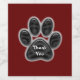 Diga "obrigado" e crie um presente único de apreciação da garrafa de vinho com este simples rótulo da garrafa de vinho. Esta etiqueta apresenta uma impressão de pata preta brilhante juntamente com as palavras "obrigado você" que aparecem na pata. O design é colocado contra um fundo vermelho escuro. Tanto o texto quanto a cor do plano de fundo podem ser personalizados de forma rápida e fácil para atender às suas necessidades.