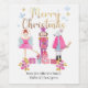 Este rótulo personalizado bonito e colorido apresenta um design de pintura aquosa festivo com um tema da história do Nutracker de Natal. O Quebra-Nozes está entre a Fada de Açúcar e o Rei do Rato. A saudação "Feliz Natal" é impressa numa folha de ouro elegante e falso, acima da ilustração. Um nome de família de amostra é impresso abaixo.