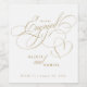 Elegantes e sofisticados rótulos de garrafa de vinho para festa de noivado branco e dourado com caligrafia clássica. ++++++++++++ Fácil de personalizar com seus nomes e detalhes da festa de noivado!