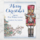 Esta etiqueta colorida e festiva de garrafa de vinho personalizada apresenta um tema de conto de fadas de inverno Nutcracker. Uma grande imagem de um preguiçoso vestido de vermelho e de ouro colocado à direita. Um belo rei de rato e bailarina de rato são pintados no fundo decorando uma árvore de Natal. Uma faixa de neve borda as bordas superior e inferior.