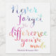 Um belo rótulo de vinho para aposentadoria ou apreciação para professores, enfermeiros, médicos, pastores etc. Perfeito para uma festa de aposentadoria ou obrigado seu presente. Este excelente "nunca esqueça a diferença que você fez" diz que é apresentado em uma bonito tipografia aquática. Pode ser personalizado com um nome e uma data - ou outra mensagem.