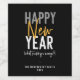 Feliz ano novo (o que poderia dar errado?), etiquetas de garrafa de humor do ano novo. Apresenta uma tipografia quic moderna em tons de cinza, branca e amarela com sólida coordenação de fundo preto clássico. linha de texto modelo para seu nome ou mensagem na parte inferior do rótulo.