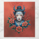O segredo da beleza pálida, a linda garota japonesa. Seu cabelo está preso num pão elegante, dando a sua aparência um toque gracioso. Um ponto vermelho brilhante é pregado na testa, criando um ponto focal. Seu rosto é intricadamente decorado com padrões azuis e vermelhos, enfatizando sua individualidade e talvez também simbolismo cultural. Ela veste um manto na moda azul e branco que combina harmoniosamente com as cores de seus ornamentos.
