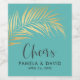 Brinque a noiva e o noivo com este rótulo de vinho tropical moderno, com uma palma de folha de ouro falsa sobre o fundo azul do Caribe da moda. Personalize com os nomes da noiva e do noivo e a data do casamento.