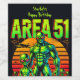 Dois seres alienígenas com olhos vermelhos piercing ficam em destaque sob céus néon vívidos. OVNIs pairantes adicionam à atmosfera surreal, colocados contra um cenário ousado e colorido. Essa trabalho de arte reúne o mistério dos extraterrestres e o alento da Área 51 em estilo eletrificante, retro-futurista.
