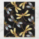 Padrão sem costura com ouro, joias, libélulas brilhantes com asas brilhantes e detalhadas sobre fundo preto. Dourada libélula.