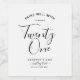 Mínima "Paira bem com virar vinte e um" rótulo de garrafa de vinho em preto e branco simples com estilo moderno, chic e elegante de tipografia de manuscrito. Todo texto é personalizável. Personalizar com idade, nome e ano de nascimento. Perfeito para presente de aniversário de 21 anos ou favor do partido.