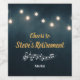 Este rótulo divertido é perfeito para um músico ou um aficionado musical. Ele apresenta luzes suspensas brilhantes em um palco de música ou teatro. Um pentagrama está no centro desta carta temática musical. A design é perfeita para celebrar a aposentadoria de um professor de música, músico, músico ou qualquer pessoa no ramo da música.