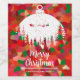 Um Enfeites de natal branco com uma silhueta de Papais noeis e sua trincheira, árvores verdes, as palavras Feliz Natal e seu nome familiar em caracteres chicos são apresentadas em um padrão de cor abstrato de Natal nessas etiquetas de garrafa de vinho personalizadas.