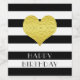 Conjunto de rótulos de vinho Aniversário apimentado com um coração de folha de ouro falso em um padrão listrado preto e branco.