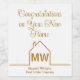 Este presente de vinho para dourar doméstico é simples e sutil com o seu monograma e nome da empresa imobiliária. Apresenta um contorno moderno minimalista de uma casa. Rótulos personalizados modernos para parabéns de corretor para obrigado de seu cliente de compra residencial.
