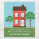 Vinho para felicitar os novos donos de casa! Uma bela casa de dois andares e duas árvores. Adicione seus nomes em um script de caligrafia.