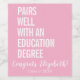 Parabéns a você, graduado em educação! Estamos celebrando sua conquista excepcional com uma garrafa especial de vinho que apresenta um rótulo personalizado e divertido. O design apresenta um fundo rosa-claro com texto branco em negrito que diz: "Combina bem com um diploma em Educação". Abaixo, "Parabéns, [Nome]!" é escrito de forma elegante em caligrafia, e "Turma de 2024" é exibido em letras maiúsculas brancas e elegantes na parte inferior. Esse rótulo personalizável permite que você adapte o design para combinar perfeitamente com a ocasião. Celebre o sucesso impressionante deles com esse rótulo de vinho único e memorável!