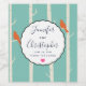 Etiquetas de engarrafamento com ilustração de pássaros com aves laranja sentados nos seus ramos. Fundo colorido verde retrô. Camadas sobre o topo é um círculo com uma borda de forma redimensionada, um pequeno coração e seu dentro de texto personalizado.
