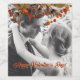 Uma mistura de designs com folhagem pintada de cor laranja e castanha no topo e no fundo, juntamente com a adição da sua própria fotografia ou imagem pessoal para um presente de vinho de Dia de os namorados de tipo único.
