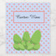 Este rótulo de vinho tem um fundo de azul claro com bolinhas de rosa de coral. Há um desenho em estilo cartoon de um cacto de pera picante. O retângulo azul claro tem o texto "Cactus Wine" que você pode mudar o texto para qualquer coisa que quiser.