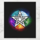 Pentagrama luminoso desenhado artificialmente com cinco elementos mágicos, água, terra, fogo, astral, ar sobre fundo negro. Pentagrama Wiccan. Wicca