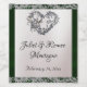 Design apresenta um fundo branco de parada pérola com bordas de fita e brilho, com coração de rolagem intrincado e marcadores para nomes de casais e data do evento. Perfeito para o casamento simples e elegante. Também disponível com fita colorida diferente para as cores do tema do casamento. Projetado para coordenar com a coleção "Corações Românticos, Fita e Faísca em Pérola". Para alterar os detalhes, clique em "Personalizar". Para mover o texto ou alterar o tamanho, a fonte ou a cor do texto, clique em "Clique para personalizar mais"