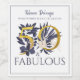 Coloque um giro espirituoso com este elegante e sofisticado azul e ouro floral 50 e um rótulo de vinho fabuloso com nome e linha personalizados.