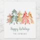 Torne mais clara a sua festa de férias ou entregue um presente de vinho com esta bela abstrato de pinheiros com aquarelas em verde-mudo, vermelho, ouro e laranja. Você pode personalizar com seu nome.