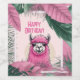Pink Happy Smiling Lama, este design apresenta um lindo e adorável Lama Feliz Smiling Rosa rodeado por palmeiras verdes e flores tropicais cor-de-rosa.