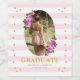 Pink roses graduation with pink and white stripes and gold confetti. Photo template via Pixabay licensed under CC0 and must be replaced with your own photo.