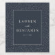 Este rótulo de vinho de casamento elegante apresenta um fundo azul-marinho sofisticado adornado com uma grade sutil de pontos brancos, criando uma borda refinada. O design apresenta texto centralizado em uma fonte serifada elegante, permitindo que nomes e datas personalizáveis sejam exibidos de forma proeminente. Seu estilo minimalista enfatiza a clareza e o equilíbrio, tornando-o perfeito para celebrar seu dia especial com um toque de charme atemporal. Ideal para casamentos, este rótulo adiciona uma estética formal, mas discreta, a qualquer garrafa, capturando a ocasião alegre de forma linda.