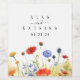 O Primavera Meadow Wildflower Watercolor Floral Wine Label não só melhora a apresentação das suas garrafas de vinho durante a celebração do seu casamento, como também aumenta o encanto visual das suas mesas. Apresentando um delicado conjunto de flores silvestres de aquarela em azul, vermelho e amarelo vibrantes, este rótulo de vinho personalizável traz a beleza serena de um campo de primavera florescente para o seu evento.