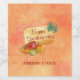 Fruta de outono moderna e fofinha numa moldura sobre fundo de textura laranja