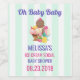 Um rótulo personalizado da garrafa de vinho para prêmios/favores de chá de fraldas. Perfeito para um sorvete de festa social temida. Texto no topo diz: Oh bebê com seus detalhes personalizados do evento. Ilustrada com uma tigela de sorvete com 3 scoops deliciosos cobertos de aspersores de doces. Um cone de sorvete também com 3 colheres de chocolate, baunilha e morango. Uma tigela de sobremesa cheia de sorvete com sabor neopolita com uma cereja deliciosa no topo. Um padrão de listras verdes e brancas no fundo.