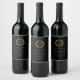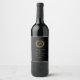 Design de etiqueta de vinho elegante e simples. Dourados tons lourel wreath com um monograma personalizável. Fundo alterável preto e texto personalizável.