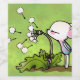 Este design caprichoso e amigável mostra um rato branco soprando as sementes de um dandelion. Será que o desejo dela se realizou?