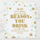 Engraçado Dossiê da Etiqueta de Vinho Dourado Faça-os sorrir com esta etiqueta engraçada e pensativa de garrafa de vinho com a citação brincalhona "[Nome], podemos ser a razão de você beber, então tenha uma garrafa em [Seu Nome/Nome da Equipe]." Cercado por um aqua chic e uma fronteira de estrelas douradas, esta design é perfeita para chefes, professores, colegas de trabalho, amigos, ou qualquer pessoa que mereça uma risada e um obrigado para você. Ideal para presentes no final do ano, apreciação de professores, festas de funcionarios ou celebrações de equipes, esta etiqueta editável permite personalizar nomes e mensagens para qualquer ocasião. É uma maneira simples e divertida de transformar uma garrafa comum em um presente memorável e sincero. Projetado por The Arty Apple, este rótulo de vinho personalizado combina humor e estilo — perfeito para expressar gratidão, celebrar sucesso ou dizer obrigado a você.