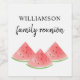 Esta etiqueta de frasco de vinho de Reunião Familiar é decorada com melancias de verão de aquarela. Facilmente personalizável. Use a Ferramenta Design para alterar o tamanho, o estilo ou a cor do texto. À medida que criamos a nossa trabalho de arte, não encontraremos esta imagem exata de outros designers. Original Watercolor © Michele Davies.