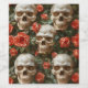 A design combina os elementos contrastantes de rosas delicados e crânios sombrios, criando uma justaposição visual marcante.Para balancear a beleza dos rosas com a presença estranha dos crânios, criando uma estética harmoniosa, porém elegante, que cativa e intriga.