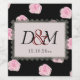 Grandes rosas repolho rosa estão espalhadas em um fundo preto neste design moderno e romântico. O centro inserido é cercado por renda preta em forma de coração. Todo o texto é facilmente personalizado.