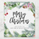 Folhagem de aquarela com o texto "Feliz Natal" personalizado com rótulos de vinho com o nome da empresa é um ótimo presente.