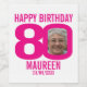 80 de aniversário, papel de festas cor-de-rosa quente e branco, cerveja ou rótulos de vinho. Excelente de adicionar um toque pessoal a uma festa de aniversário surpreendente da oitenta. Personalize com a foto de sua aniversariante no dia 08 de 80 e personalize com sua escolha de nome e data de comemoração de aniversário. Projetada por Sarah Trett para www.mylittleeden.com