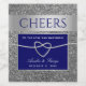 Elegante etiqueta de vinho de casamento em azul real e prata brilhante com coração de corda e letra moderna e simples.
