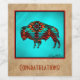 Personalize este rótulo de vinho do sudoeste de Buffalo. Ela apresenta um Búfalo Sudoeste ou Bison em Turquesa, Laranja e Negro e a palavra "Parabéns"! Design De Arte Original Pelo Artista Kerry Miller.