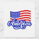 Ilustração da palavra "América" em uma letra estilizada de escrita, com uma bandeira americana ondulando acima dela! A palavra "América" é reproduzida numa cor azul profunda com um contorno azul mais claro, dando-lhe um efeito tridimensional. Abaixo da palavra, há uma fileira de pequenas estrelas brancas, ecoando as estrelas na bandeira. A bandeira americana é retratada com listras vermelhas e brancas e um cantão azul cheio de estrelas brancas. O estilo geral é limpo e gráfico, com um tema patriótico.